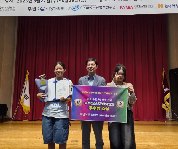 [충청중심뉴스] 제천청소년문화의집 청소년운영위원회‘날개’ 가 여성가족부 주최, 한국청소년수련시설협회 주관으로 진행된 ‘2025년 우수 청소년운영위원회 선정 사업’에서 우수상을 받았다.