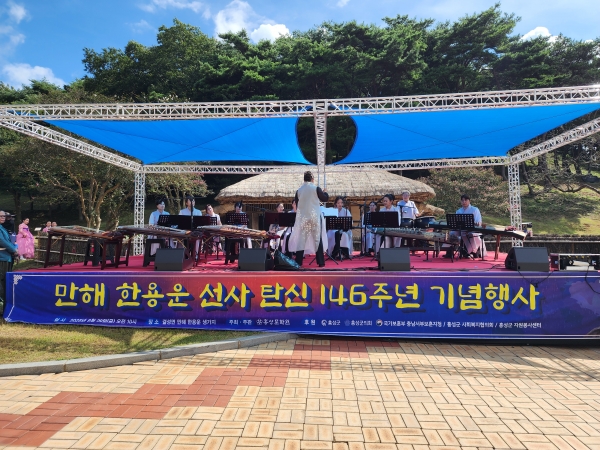 홍성문화원 주관으로 열린 이날 행사는 주요 기관·단체장, 사회단체, 지역주민이 참여한 가운데 행장소개, 탄신 축하공연, 만해 시 낭송 등의 탄신을 기념하는 문화 행사로 진행됐다.