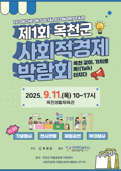 조도연 경제과장은“이번 박람회는 처음 열리는 자리인 만큼 옥천 사회적경제의 성과를 군민과 함께 나누고 다양한 협력과 가치가 터져 나오는 축제의 장이 될 것”이라며 “지역경제와 공동체가 함께 성장하는 계기가 되길 바란다”고 말했다.