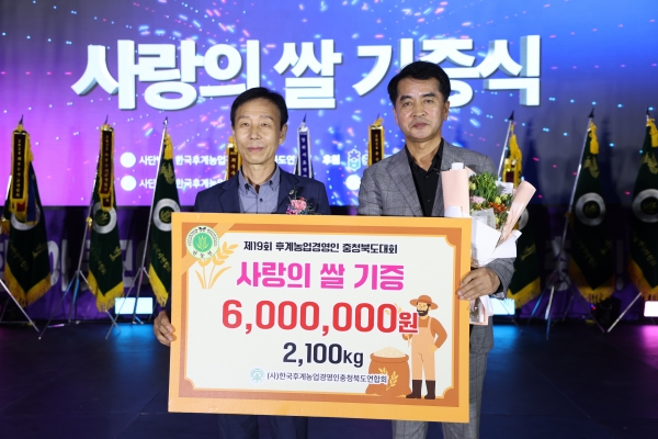지난 2일 열린 개회식에는 공로패 시상과 각종 시상이 진행됐으며 한농연 충북연합회가 보은군에 사랑의 쌀 2,100kg을 기증해 훈훈한 감동을 전했다.