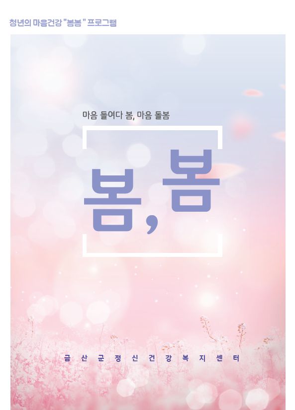 [충청중심뉴스] 금산군보건소와 금산군정신건강복지센터는 10월까지 19세 이상 35세 미만 우울 고위험군 청년을 대상으로 마음건강 프로그램 ‘봄, 봄’을 진행한다.