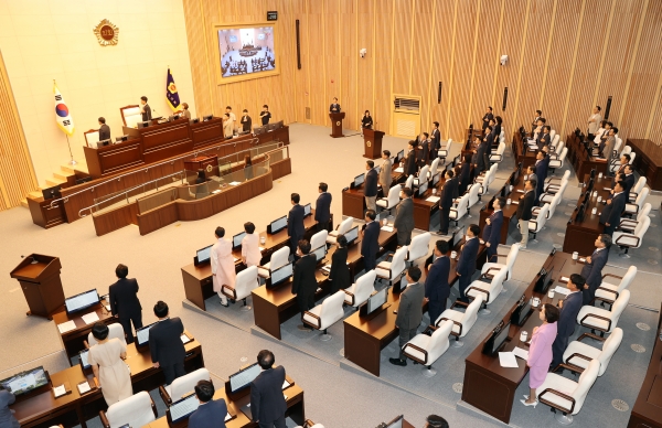 이양섭 의장은 개회사를 통해 “신청사에서 진행하는 첫 본회의로 공간은 바뀌었지만 도민을 위한 책임과 사명감은 변함이 없다”며 “35명 의원 모두가 초심으로 돌아가 도민을 위한 의정활동에 더욱 헌신할 것”이라고 밝혔다.