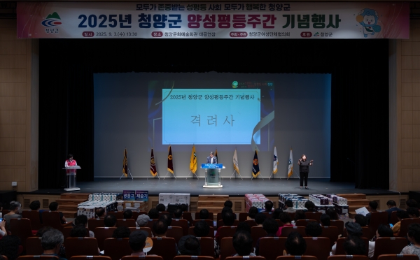 [충청중심뉴스] 청양군은 청양군여성단체협의회 주최로 지난 3일 청양문화예술회관 대공연장에서 ‘모두가 존중받는 성평등 사회, 모두가 행복한 청양’ 슬로건 아래 청양군 양성평등주간 기념행사를 개최했다.