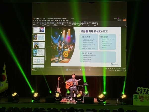 강연은 △재즈의 탄생 △블루스의 발전 △로큰롤 시대 △비틀즈시대 △현대 대중음악 등 시대별 흐름을 중심으로 순으로 이어졌다.