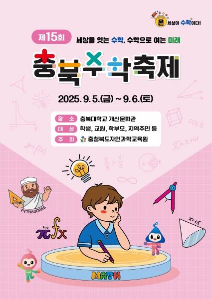 [충청중심뉴스] 충북교육청 직속기관 자연과학교육원은 오는 5일부터 6일까지 충북대학교 개신문화관에서 ‘제15회 충북수학축제’를 개최한다.