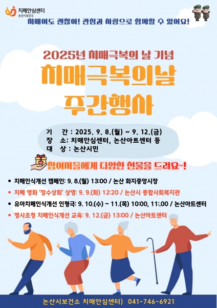 [충청중심뉴스] 논산시는 ‘치매여도 괜찮아 관심과 사랑으로 함께 할 수 있어요’라는 주제로 오는 9월 8일부터 12일까지 ‘2025년 치매 극복의 날’ 주간행사를 운영한다.