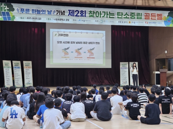 [충청중심뉴스] 세종시가 5일 나성초등학교 강당에서 세종기후·환경네트워크와 함께 ‘찾아가는 탄소중립 골든벨’을 개최했다.