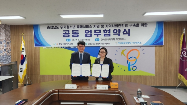 충남사회서비스원과 한국폴리텍대학 아산캠퍼스는 위기청소년 지원과 진로 체험 기회 확대를 위해 협력하기로 했다.