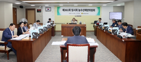 [충청중심뉴스] 충남도의회 농수산해양위원회는 5일 제361회 임시회 제2차 회의에서 충남도 농축산국·해양수산국 소관 2025년 추가경정예산안, 조례안 등과 농축산국 2025년도 출연계획안을 심사했다.