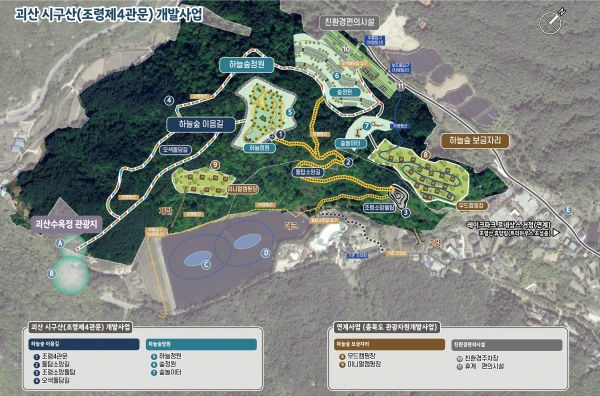 사업은 2026년부터 착수해 괴산군 연풍면 수옥정관광지 인근에 조령 제4관문을 설치하고 하늘숲정원과 하늘숲이음길 등 친환경 둘레길을 조성한다.