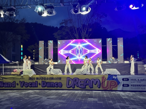 [충청중심뉴스] 예산군청소년복지재단은 지난 6일 복합문화복지센터 다목적광장에서 청소년들의 재능과 열정을 한껏 발산할 수 있는 ‘2025 예산군청소년페스티벌 드림-업’을 성황리에 개최했다.