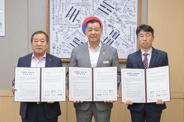 이번 협약은 공주시와 세종공주축산농협, ㈜해피브릿지 공주공장이 함께 참여해 공주시 대표 축산물인 공주알밤한우의 활용도를 높이고 소비 활성화를 통해 농가 소득 증대와 지역 경제 활성화를 도모하기 위해 추진됐다.