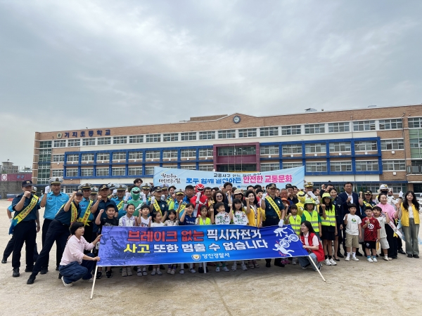 [충청중심뉴스] 당진경찰서는 9월 9일 아침 기지초등학교 등굣길에서 경찰·당진시청·당진교육지원청·충남 교통연수원·녹색어머니회·모범운전자회·당진여객·어린이레인저 등 약 120여명이 참석한 가운데 ‘유관기관 합동 등굣길 안전 캠페인’을 실시했다.