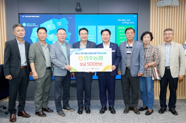 [충청중심뉴스] 아산시는 9일 인주농협 임직원들이 지역 취약계층을 지원하기 위해 성금 500만원을 기부했다고 밝혔다.