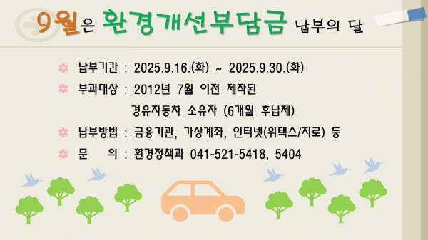 [충청중심뉴스] 천안시는 경유자동차 1만 3,000여 대에 대해 2025년 2기분 환경개선부담금 6억 9,000만원을 부과한다고 10일 밝혔다.