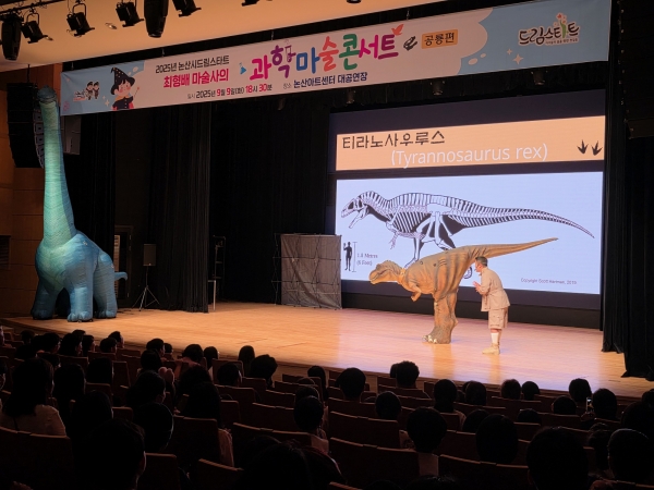 [충청중심뉴스] 논산시는 지난 9일 논산아트센터에서 드림스타트 대상 아동 및 학부모, 일반아동 등 700여명이 함께한 가운데, 2025년 드림스타트 ‘오리지널 과학 마술 콘서트 공룡편’ 공연을 개최했다.