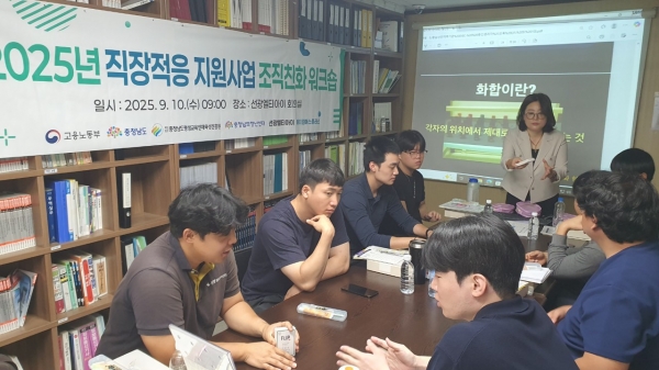 [충청중심뉴스] 충남청년센터는 도내 산단입주 기업들의 청년친화 조직문화를 만들기 위해 충남 청양군 화성면에 소재한 ㈜선광엘티아이 회의실에서 기업 관리자를 대상으로 직장적응 지원사업 교육을 진행했다.