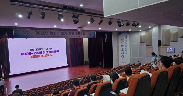 [충청중심뉴스] 아산시는 11일 시청 시민홀에서 전 부서와 산하기관 직원 300여명이 참석한 가운데 ‘2025년 하반기 회계·계약 실무교육’을 실시했다고 밝혔다.