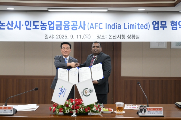 [충청중심뉴스] 논산시는 지난 11일 시청 상황실에서 인도 농업금융공사와 우수 농산물 수출 및 국제 협력 강화를 위한 업무협약을 체결했다.