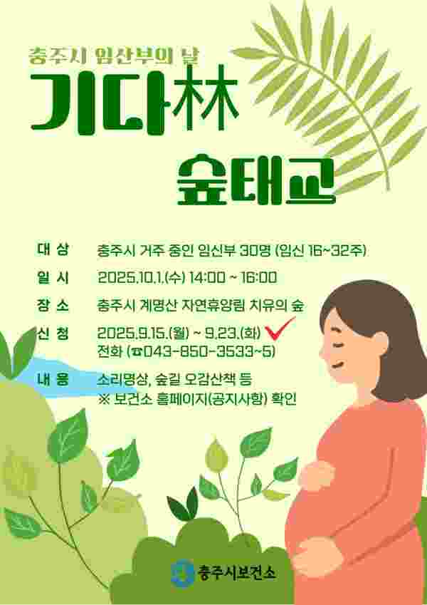 [충청중심뉴스] 충주시는 임산부의 날을 기념해 지역 임신부들을 위한 특별한 산림치유 프로그램을 개최한다.