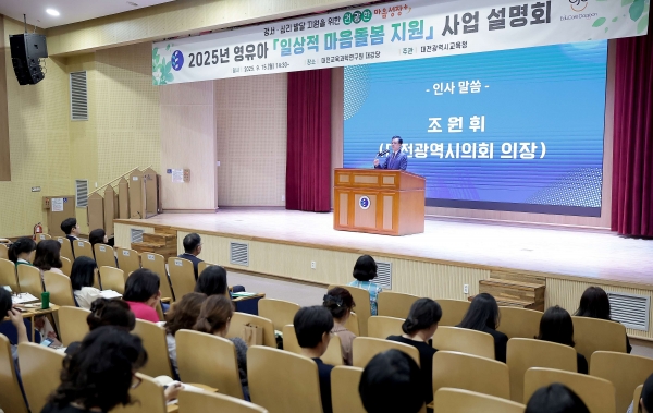[충청중심뉴스] 대전시의회 조원휘 의장은 15일 대전교육과학연구원에서 개최된 2025년 영유아 일상적 마음돌봄 지원사업 설명회에 참석해 보육 일선에서 최선을 다하는 보육인들께 감사를 표하고 아이들과 보육인들 모두 행복한 보육환경 조성을 약속했다.