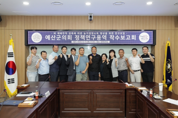 [충청중심뉴스] 예산군의회는 지난 11일 군의회 문화강좌실에서 ‘벼 재배면적 감축에 따른 농가경영소득 향상을 위한 정책연구용역’ 착수보고회를 개최했다.