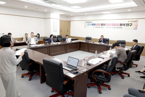 이번 연구용역은 대전광역시 소관 문화예술·체육·관광 분야 조례 59건을 전수 조사해 △중복·결핍·정합성 문제 진단 △타 지자체 조례 정비 사례 분석 △상위법령과의 부합성 검토 등을 통해 체계적이고 효율적인 조례 정비 방안을 마련하는 것을 목표로 한다.