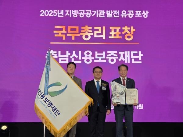 [충청중심뉴스] 충남신용보증재단은 9월 18일 대전컨벤션센터 제2전시장에서 열린 ‘2025 지역경제 혁신박람회 및 제20회 지방공공기관의 날’ 기념식에서 ‘지방공공기관 발전 유공’ 국무총리 기관표창을 수상했다고 밝혔다.