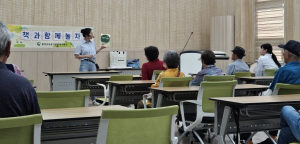 [충청중심뉴스] 홍성군 공공시설관리사업소는 홍성군보건소 치매안심센터와 협업해 오는 11월까지 어르신들의 인지능력 향상과 치매예방을 위한 책놀이 프로그램 ‘책과 함께 놀자’를 운영한다.