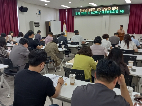 [충청중심뉴스] 부여군은 지난 9월 18일 오후 4시, 여성문화회관 3층 대강당에서 ‘민생회복 소비쿠폰 2차 사업’에 대한 읍면 담당자 교육을 진행했다.