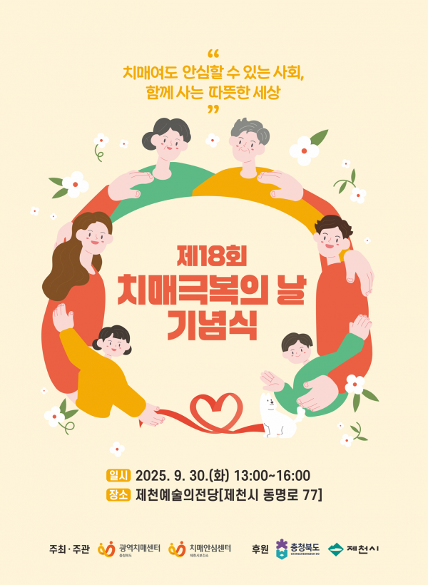 이번 행사는 2025년 치매극복의 날을 기념해 충청북도 광역치매센터와 제천시 치매안심센터가 공동으로 주최·주관하며 치매에 대한 관심을 높이고 치매 관리의 중요성을 널리 알려 치매를 극복하기 위한 지역사회의 공감대를 형성하기 위해 마련됐다.