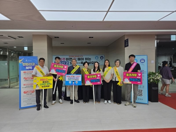 [충청중심뉴스] 홍성군은 준공을 앞둔 내포신도시 디에트르 에듀시티 아파트 사전점검 현장에서 신규 입주민들을 대상으로 9월 19일부터 21일까지 전입신고 홍보 활동을 펼쳤다.