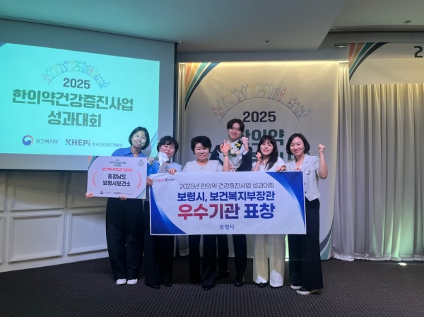 [충청중심뉴스] 보령시보건소는 지난 19일 보건복지부에서 주관한 ‘2025년 한의약건강증진사업 성과대회’에서 우수기관으로 선정되어 보건복지부장관 표창을 수상했다고 밝혔다.