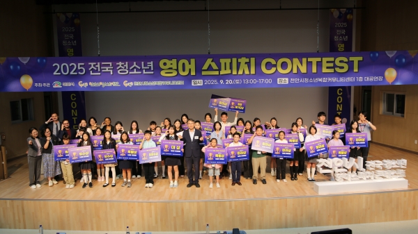 [충청중심뉴스] 천안시는 지난 20일 천안시청소년복합커뮤니티센터에서 ‘2025 전국 청소년 영어 스피치 콘테스트’를 개최했다.