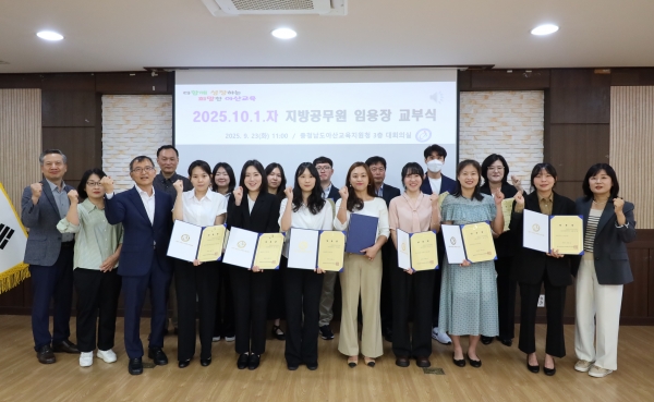[충청중심뉴스] 아산교육지원청은 9월 23일 오전 11시, 3층 대회의실에서 2025년 10월 1일자로 인사 발령된 일반직 공무원 17명을 대상으로 임용장 교부식을 개최했다.