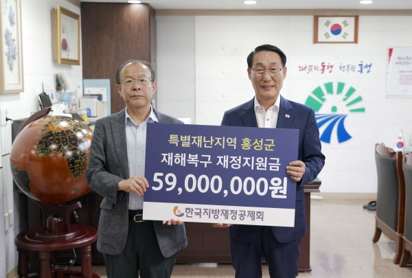 [충청중심뉴스] 홍성군은 지난 22일 행정안전부 산하 한국지방재정공제회로부터 특별재난지역 재해복구 재정지원금 5,900만원을 전달받았다.