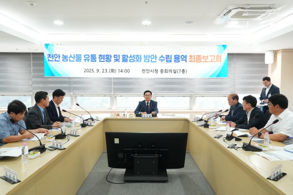 천안시는 지난 23일 시청 중회의실에서 천안 농산물 유통 현황 및 활성화 방안 수립 용역’ 최종보고회를 개최했다.