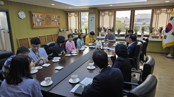 [충청중심뉴스] 논산시는 23일 관내 직업재활 시설인 ‘논산발그래일터’ 하주현 이사장과 종사자, 소중한사람들 근로자 7명을 초청해 소통의 자리를 마련했다.
