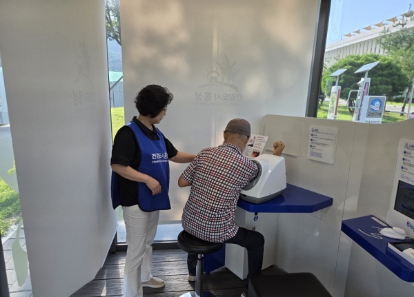 측정 가능한 항목은 혈압, 체성분, 스트레스 지수, 신장, 체중 등으로 전용 앱을 설치하면 결과가 자동 저장돼 개인별 건강 상태를 전·후 비교할 수 있다.