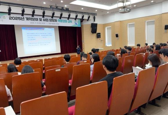[충청중심뉴스] 홍성군은 지난 23일 농업기술센터 대강당에서 계약업무의 전문성 제고와 투명한 행정 구현을 위해 계약 및 사업 담당자 100여명을 대상으로 역량강화 교육을 실시했다고 밝혔다.