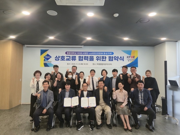 [충청중심뉴스] 홍성군은 지난 23일 청운대학교 학생종합라운지에서 소상공인연합회 홍성지부와 청운대학교 RISE사업단이 지역 소상공인 및 청년 창업 생태계 조성을 위한 상호협력 업무협약을 체결했다고 밝혔다.