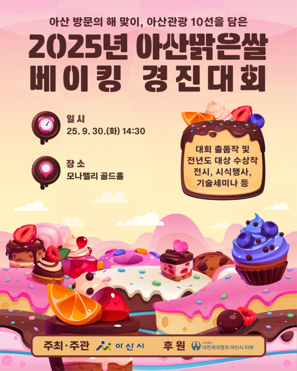 [충청중심뉴스] 아산시는 오는 30일 아산 모나밸리 골드홀에서 ‘아산 방문의 해’를 맞아 ‘2025년 아산맑은 쌀 베이킹 경진대회’를 개최한다.