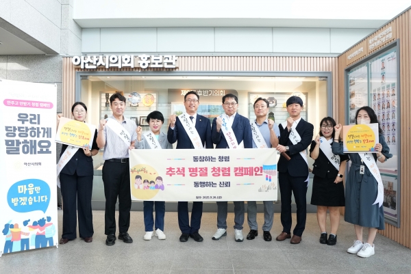 [충청중심뉴스] 아산시의회는 26일 추석 명절을 앞두고 의회동 1층 로비에서 청렴캠페인을 실시했다.