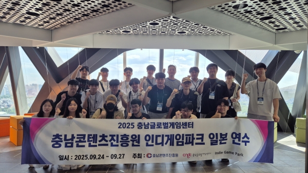 [충청중심뉴스] 충남콘텐츠진흥원 산하 충남글로벌게임센터가 24일부터 4일간 2025 인디게임파크 선발팀들의 글로벌 역량 강화를 위해 일본 연수를 진행한다고 밝혔다.