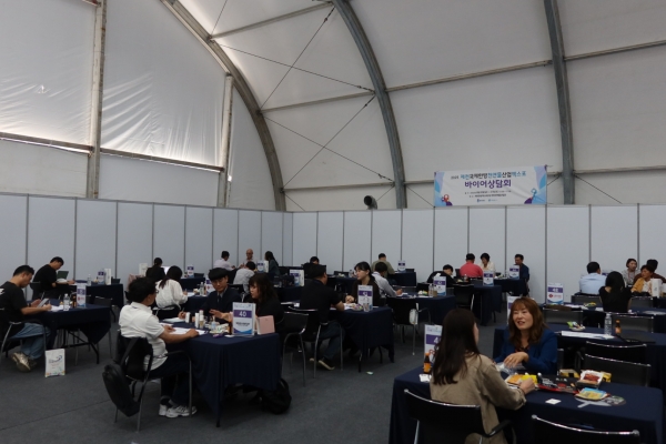 [충청중심뉴스] 2025제천국제한방천연물산업엑스포 산업관에서 열린 국내바이어상담회 첫날, 홈쇼핑·온라인몰·백화점 등 주요 유통사와 기업들이 1:1 상담을 이어가며 실질적인 판로 개척 기회를 모색하고 있다.