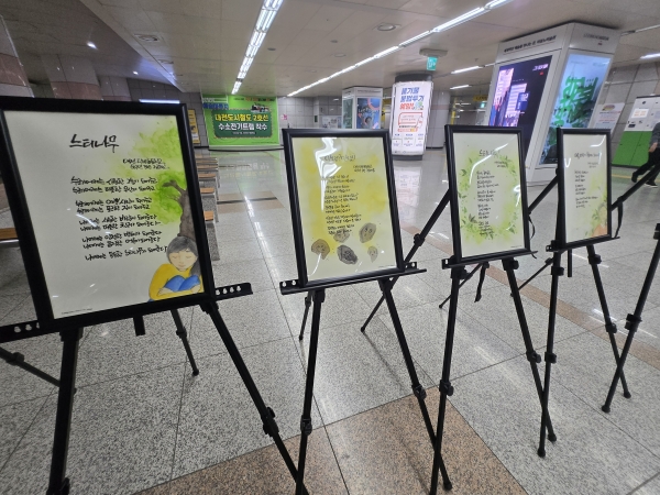 [충청중심뉴스] 대전서부교육지원청은 9월 29일부터 10월 17일까지 대전시청역 대합실에서 2025학년도 사제동행 독서문학기행 참가자 28명의 시화 작품 전시회 ‘詩-만나다 반하다 노래하다’ 시화전을 개최한다고 밝혔다 ‘詩-만나다 반하다 노래하다’는 시를 만나고 반하고 노래하는 3단계로 이루어지는 2025학년도 사제동행 독서문학기행 프로그램이다.