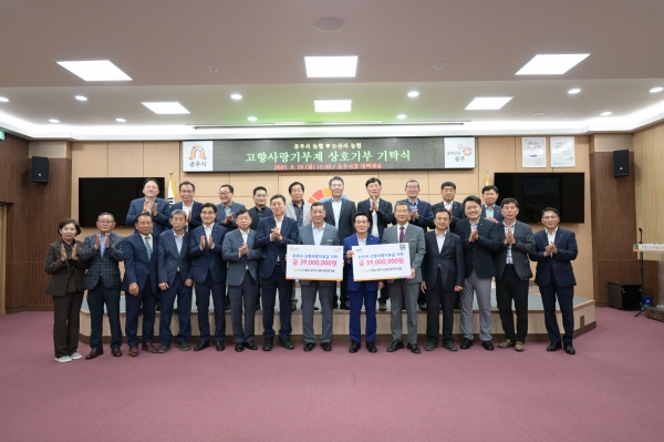 [충청중심뉴스] 논산시는 29일 공주시청 대백제실에서 공주시 및 양 시 농협 관계자들과 함께 ‘고향사랑기부금 상호 기탁식’을 개최했다고 밝혔다.