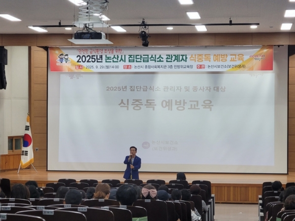 [충청중심뉴스] 논산시는 29일 종합사회복지관에서 학교·복지시설·산업체 등 집단급식소 관계자 200여명을 대상으로 식중독 예방 교육을 실시했다.