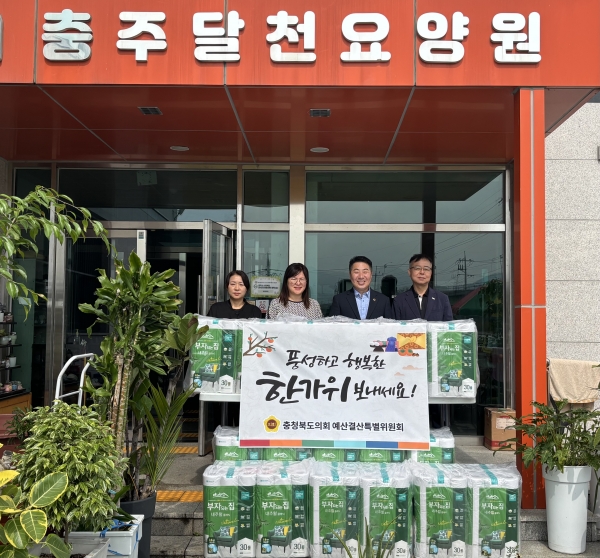 [충청중심뉴스] 충북도의회 예산결산특별위원회는 30일 충주시 소재 충주달천요양원을 방문해 생활용품을 전달하고 관계자들을 격려했다.