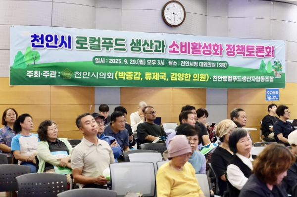 이어서 토론회를 공동 주최한 박종갑, 류제국, 김영한 의원은 “지역 농산물의 생산과 소비가 활성화되기 위해서는 행정, 생산자, 소비자 간 긴밀한 협력과 정책적 뒷받침이 필요하다”며 “천안시의회도 관련 정책이 실효성 있게 추진될 수 있도록 예산 확보와 제도적 기반 마련 등 입법적·정책적 지원을 아끼지 않겠다”고 밝혔다.